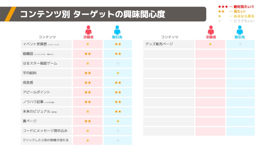 ペルソナが決まると、その人たちがどのようなコンテンツを見たいかが決まります。