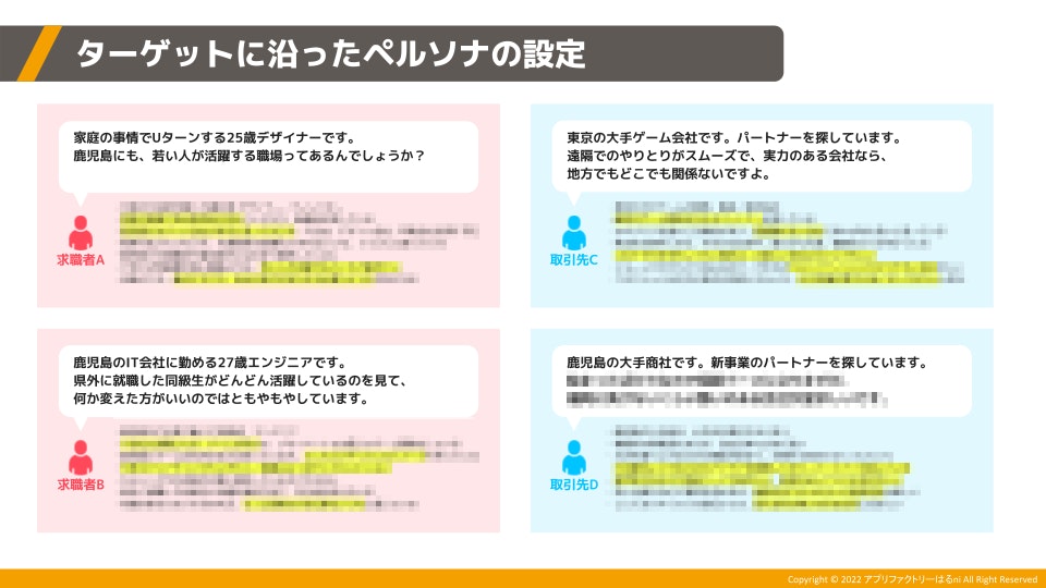 求職者と取引先の2種類に定めてペルソナを作成しました。