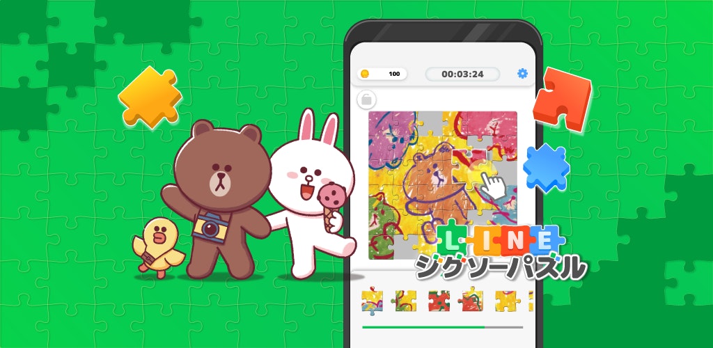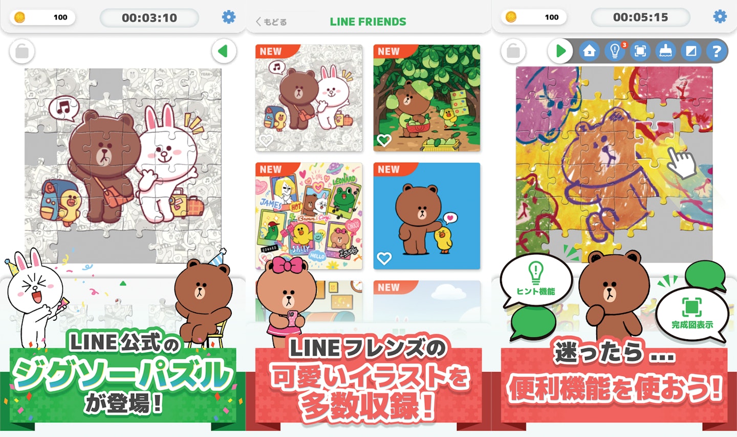 いろんなLINE FRIENDSのパズルを完成させましょう。